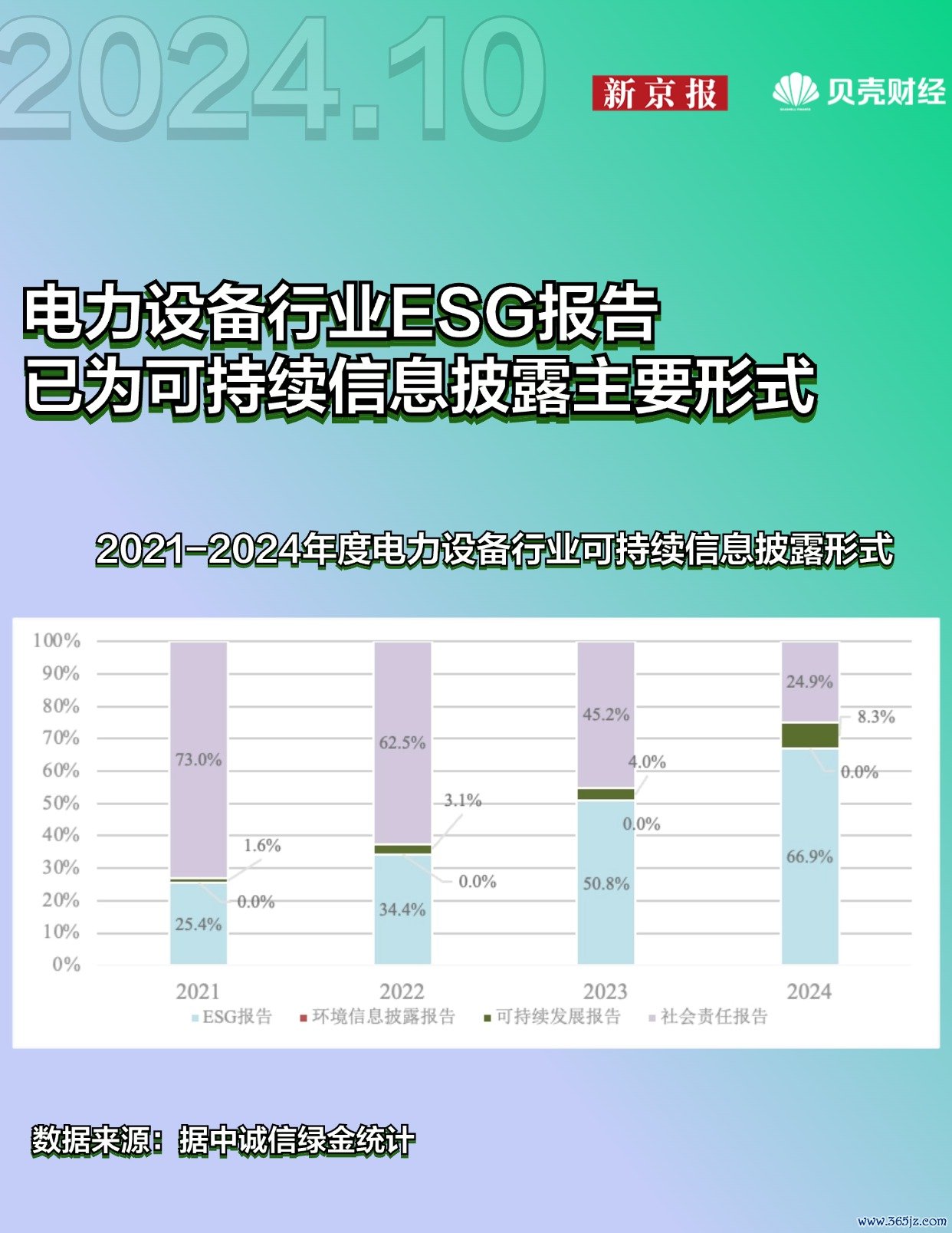 近4年,电力设备行业可持续发展信息披露比例呈上升趋势,不过仍未追上全行业披露率的平均水平。2021-2024年间,电力设备行业可持续信息主要披露形式由社会责任报告转变为ESG报告。2024年ESG报告(包含单独披露与年报披露)披露比例达到66.9%,其中单独披露ESG报告占比达95%。