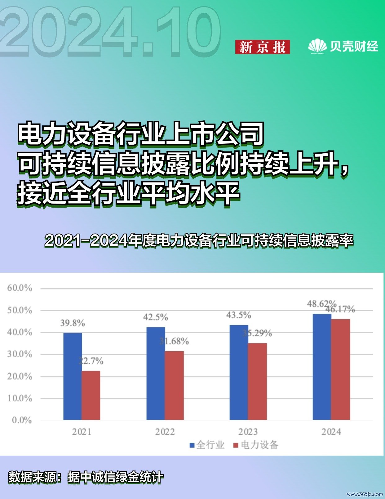 报告显示,电力设备行业在2021-2024年可持续发展信息披露比例呈上升趋势,正在缩小与全行业平均水平的差距。2021-2024年,电力设备行业可持续信息披露率分别是22.7%、31.68%、35.29%、46.17%。相比之下,全行业可持续信息披露率分别为39.8%、42.5%、43.5%、48.62%。