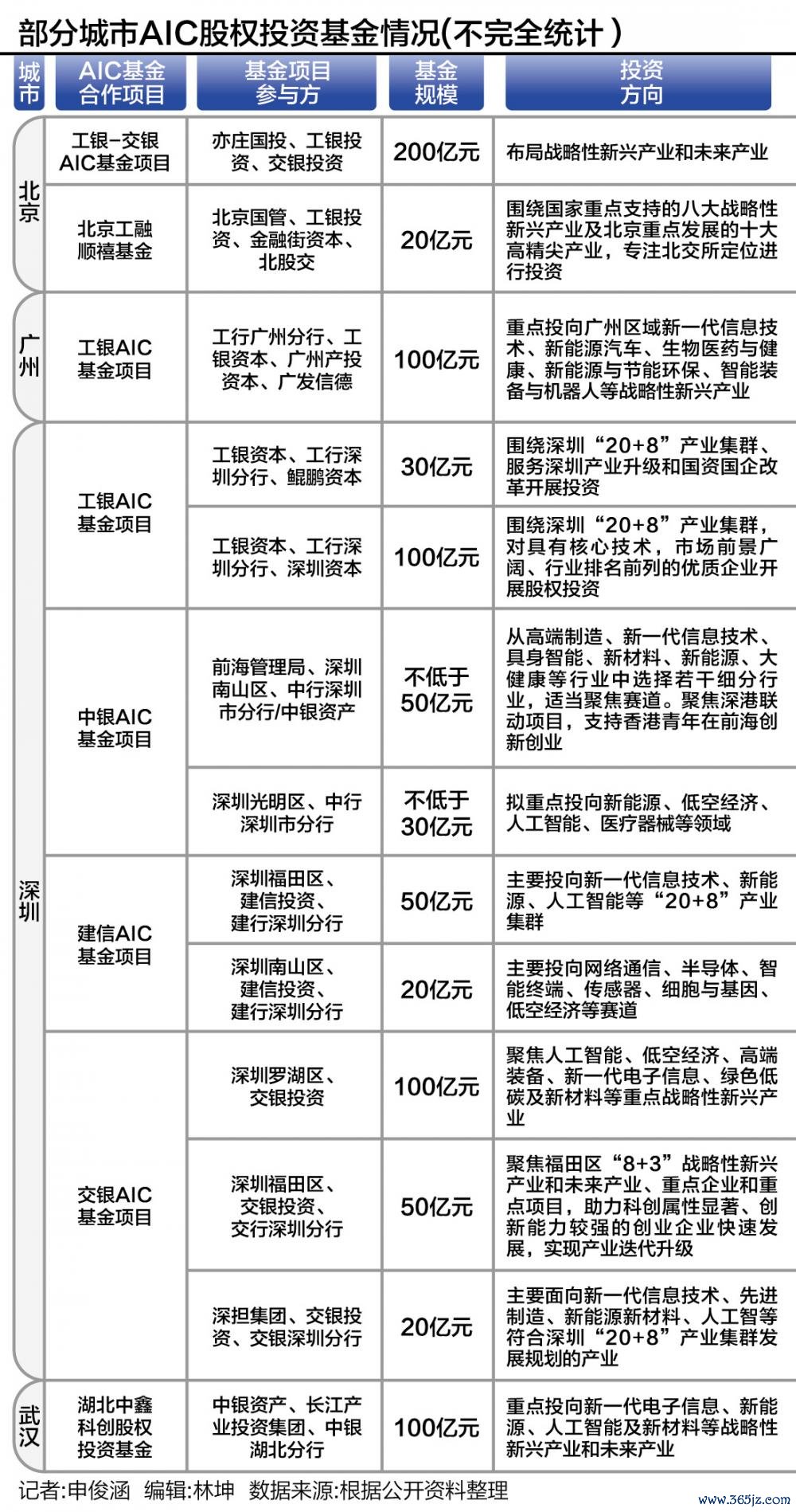 比如9月29日,广州首只金融资产投资公司(AIC)股权投资基金正式落地。广州产投携手工银资本、广发信德及中国工商银行广州分行,共同发起这只100亿元规模的AIC基金;10月16日,北京亦庄联合工银投资、交银投资设立的两只百亿元新质生产力发展平行基金正式发布,这是经开区金融资产投资公司(AIC)股权投资试点首批落地;10月18日,在“深圳创投日”耐心资本专场活动中,深圳一次性落地首批9只、总规模约450亿元的AIC合作基金。